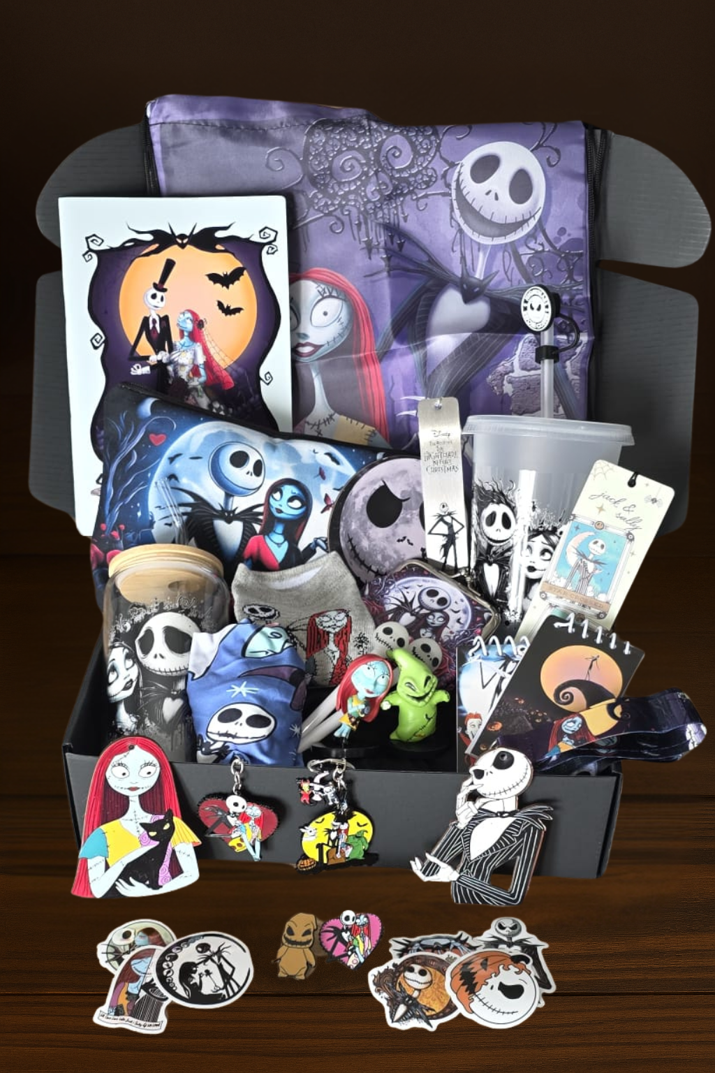 Magia sombría desde Halloween Town: bolígrafos calavera, pines misteriosos, marcapáginas oscuros y accesorios con la esencia de Jack.