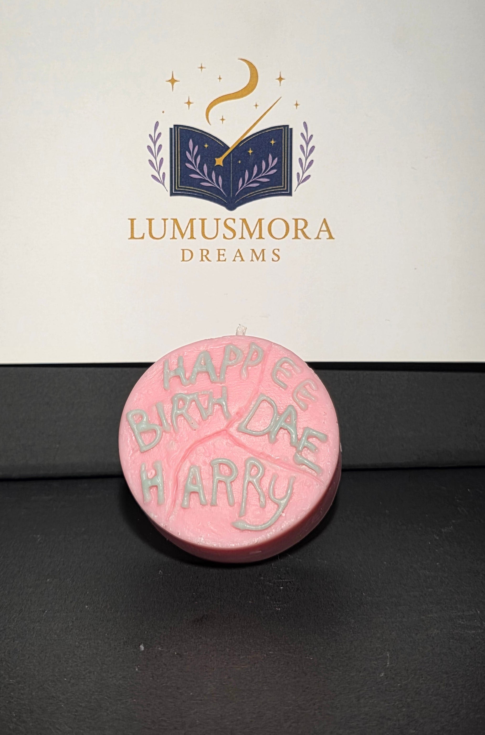 La vela “Happee Birthdae Harry” recrea con todo detalle la emblemática tarta rosa que Hagrid le regala a Harry en su onceavo cumpleaños.